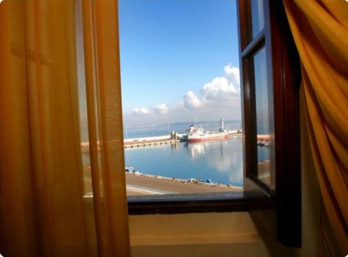 El restaurante tiene una sala interna y un cenador externo con vistas al puerto de Gallipoli.