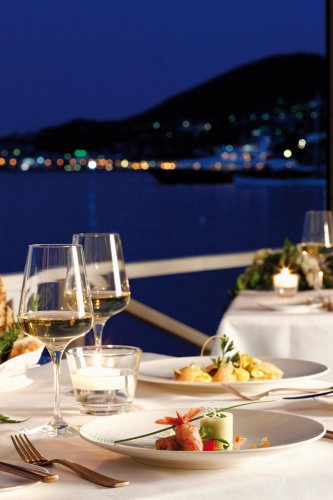 El hotel ofrece la posibilidad de elegir entre tres restaurantes, que además de deleitar a los clientes con sus fascinantes vistas al mar, ofrecen exquisitos platos de la cocina mediterránea acompañados de selectos vinos.