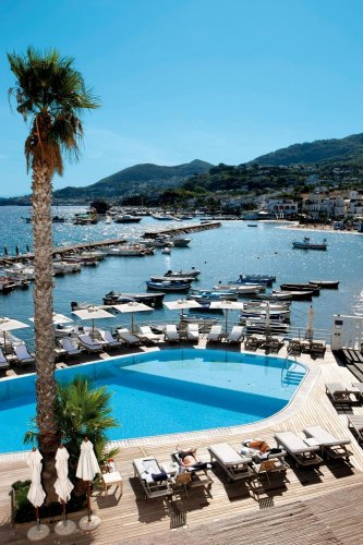 El hotel nace en los años cincuenta impulsado por el editor y productor cinematográfico Angelo Rizzoli, que enamorado de la isla y de sus tradicionales termas, decidió en 1956 ampliar las históricas termas de la Regina Isabella y realizar un hotel.