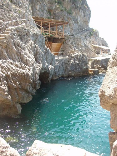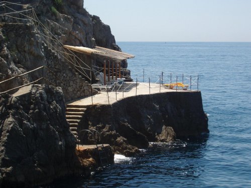 The hotel has spacious terraces overlooking the sea, a private, fully equipped beach that can be reached by a pathway surrounded by lush greenery, a water garden surrounded by Mediterranean plant life, a small swimming pool with massage jets and water therapy and convenient private parking.