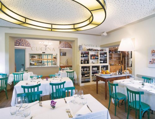 En una atmósfera fascinante, los clientes podrán degustar las recetas tradicionales de la Toscana acompañadas de una gran selección de vinos procedentes de la completa enoteca.