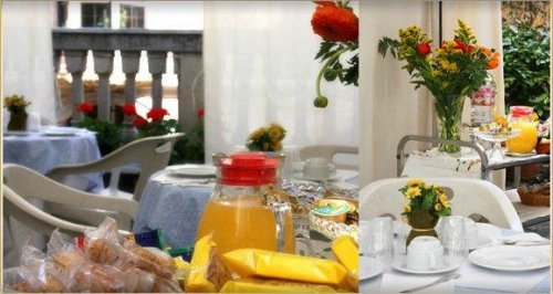 El bufé se sirve en la sala de desayunos e incluye dulces, galletas y capuchino. Con la llegada del buen tiempo se puede tomar en la terraza.