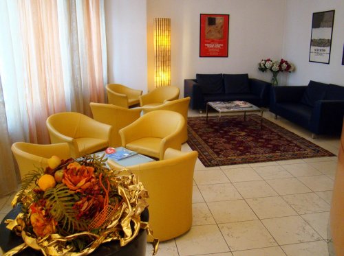 Girar a la derecha por la Via Simoncini y continuar después del semáforo hacia la Via Bonomelli. El Hotel Piemontese se ve fácilmente a la izquierda.