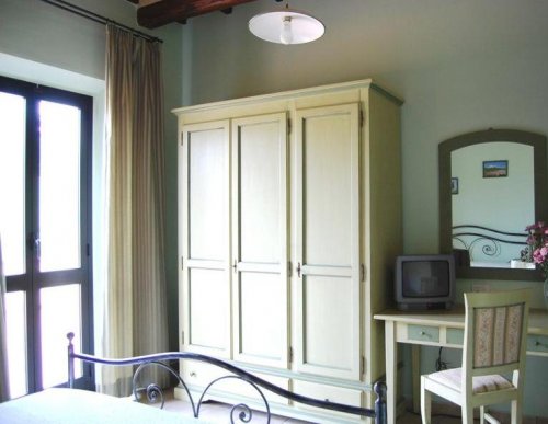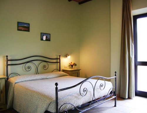 El hotel dispone de 15 habitaciones de típico estilo rural toscano, con camas de hierro forjado, muebles de madera oscura y techos con vigas a la vista.