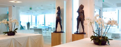 El hotel ofrece música, conexión wi-fi a Internet en todas las instalaciones, tres restaurantes, una sala para muestras y exposiciones, un amplio garaje, un parque de bicicletas reservado a los clientes del hotel y acceso exclusivo a la playa.