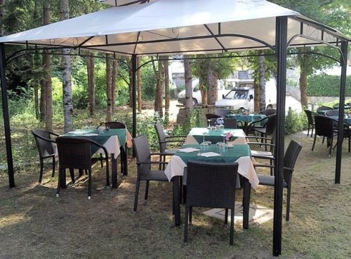 La "Locanda della Pinetina", anexa al hotel, ofrece un servicio cuidado e impecable, en un ambiente cálido y familiar. El delicioso menú ofrece las especialidades de la cocina regional con entrantes de embutidos y quesos locales, primeros platos de pasta como los “cazzarelli” y los espaguetis a la “chitarra”, brochetas de carne de oveja, “timballi” (lasañas típicas), segundos platos de carne, verduras y fruta de temporada, además de dulces típicos.