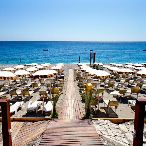 Abierto todo el año, ofrece habitaciones con vistas al mar, una encantadora piscina de verano con tumbonas y sombrillas, elegantes salones para el relax, un acogedor bar y un aparcamiento privado.