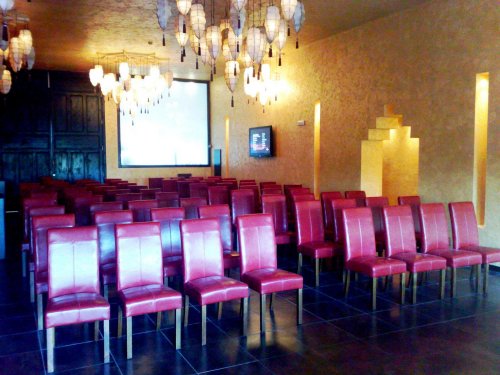 La sala è dotata di lavagna luminosa, lavagna a fogli mobili, microfoni fissi e senza fili, monitor, lettore DVD, sistema di amplificazione, videoproiettore, collegamento WI-FI a Internet.