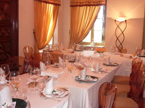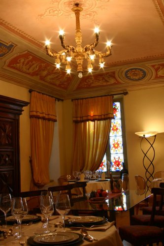 Los clientes son recibidos en ambientes caracterizados por las pinturas al fresco, vigas de madera, suelos de terracota y escaleras de piedra, que han sido decorados con muebles antiguos del siglo XVII toscano, del XVIII piamontés y del lejano oriente, piezas que son el fruto de una colección llevada a cabo durante decenios.