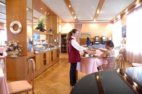 El desayuno consiste en un rico y variado bufé.