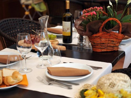 En una gran sala orientada al sur, el restaurante ofrece tradición y elegancia. La sala está dotada de grandes ventanas con vistas al encantador parque y a la maravillosa piscina.