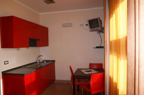 Estudio para 1/2 personas con una única habitación con cama de matrimonio, comedor con mesa y sillas, cocina americana (equipada con vajilla, utensilios, cafetera), lavavajillas y nevera, televisor en color, aire acondicionado/calefacción, caja fuerte, baño privado con ducha y secador de pelo.