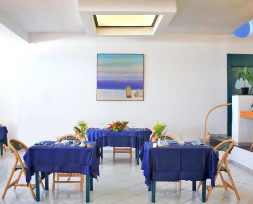 El restaurante ofrece un desayuno bufé continental, típicos sabores mediterráneos y especialidades internacionales.