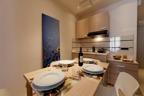Los apartamentos pueden albergar dos, tres o cuatro personas. Muy luminosos y espaciosos, están a disposición con cama de matrimonio o dos camas individuales. Disponen de armario con cajonera, apoya-maletas, gran escritorio, cómodo sofá, televisión de pared en color LED de 26", cabeceros de la cama de piel, práctica mesa, cocina, nevera con congelador y set de vajilla. Los apartamentos disponen de un amplio baño con ducha (algunos con silla) y secador. Dos de los apartamentos disponen de baños adaptados para personas con movilidad reducida y otros un balcón con vistas a la calle principal.