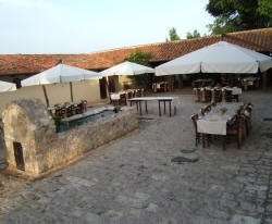 En verano es posible disfrutar del encanto del Restaurante al aire libre ya que se sitúa en plaza del Foro Appio (del siglo XVIII), por cuyo lateral pasa el río Cavata.