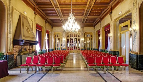 Los espacios congresuales del hotel, dotados de mármoles, estucos y techos con incrustaciones, están concebidos para acoger reuniones y eventos de prestigio.