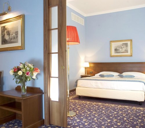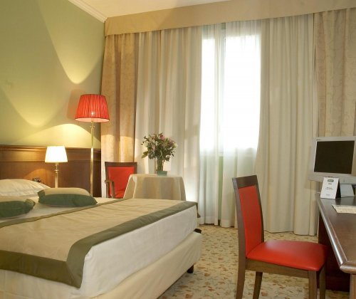 El hotel dispone de 108 confortables habitaciones, 7 de las cuales son executive y 3 suites con elegantes retoques. Todas las habitaciones están dotadas de TV en color vía satélite (300 canales Sky gratuitos con Pay Per View), Coffee & Tea facilities gratuito, conexión ADSL a Internet, hilo musical en el baño y set de cortesía con productos de calidad.