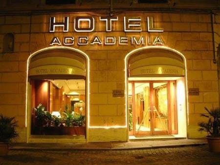 El Hotel Accademia dispone de 75 habitaciones distribuidas en 5 plantas y hasta las que se puede llegar en ascensor. Están dotadas de moqueta, TV en color vía satélite con canales internacionales, teléfono, conexión Wi-Fi de pago, radio, minibar, aire acondicionado, caja fuerte y baño privado con ducha o bañera y secador de pelo.