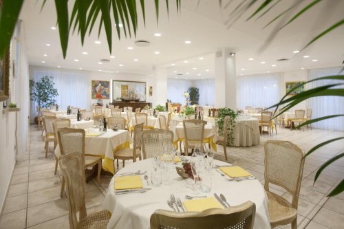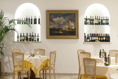 El desayuno bufé se sirve en la elegante sala restaurante, que con la llegada del buen tiempo se abre a la terraza frente al mar.
