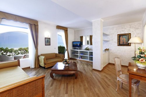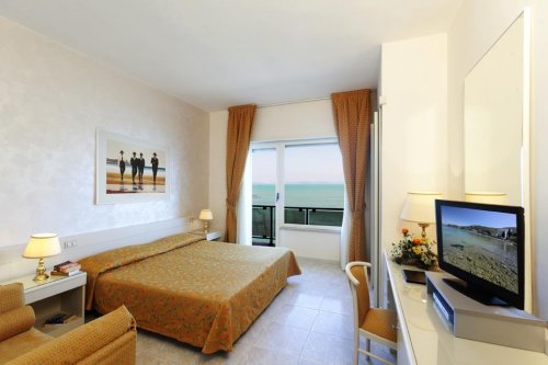 Habitaciones Disponibles: Individual con vistas a la montaña, Doble con vistas a la montaña, Matrimonial con vistas a la montaña, Doble con vistas al mar, Matrimonial con vistas al mar, Doble de uso Individual con vistas al mar, Junior Suite Cuádruple con vistas al mar, Suite Cuádruple con vistas al mar.
