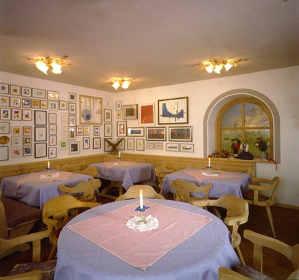 La Ciasa Antersies has a bar and two dining rooms furnished in typical Tyrolean style.
