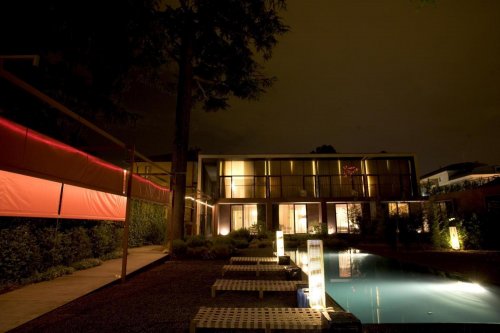 El complejo está formado por una villa de finales del siglo XIX y un moderno edificio anexo llamado Next, ambos inmersos en un jardín centenario de cidros del Libano y bambú, que une las dos “almas” del hotel. El cliente tiene a su disposición un parking privado y una piscina de verano.