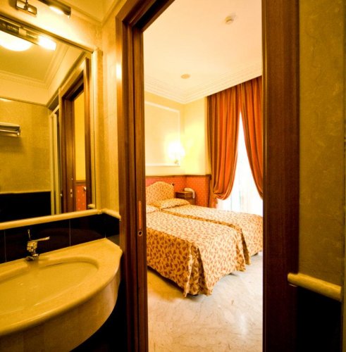 El Hotel Donatello se encuentra en el corazón de Roma, entre el Coliseo y las basílicas de San Juan de Letrán y Santa María Maggiore, cerca del Foro Romano y de la Fontana di Trevi.