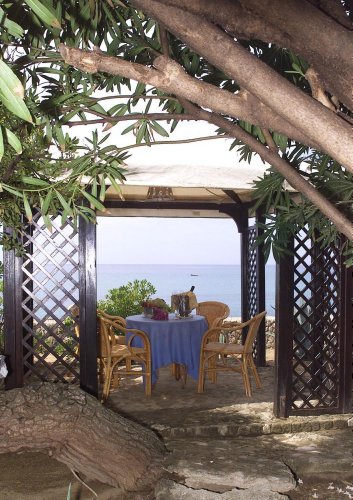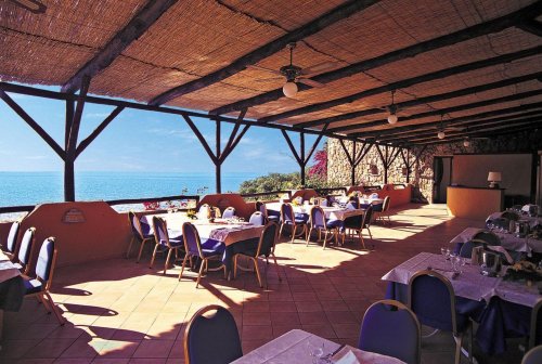 L'hotel propone un ristorante direttamente sulla spiaggia, perfetto per un pasto serale, grazie all'atmosfera romantica e alla posizione pittoresca di fronte al porto di Capo Palinuro.