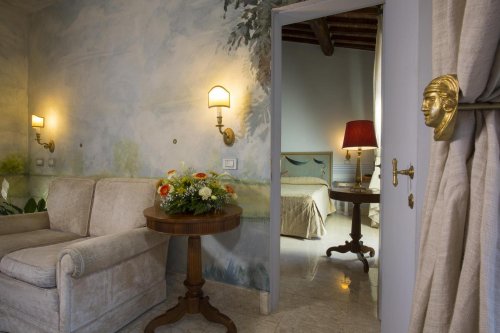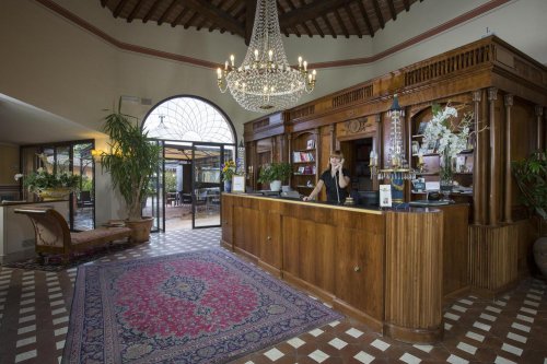 Todos los ambientes, desde el hall a la sala para desayunos, salones, salas de reuniones y las salas para banquetes, están dominados por las líneas trazadas por el conocido arquitecto que ha dejado en el senese muchas obras.