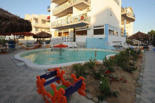 El hotel dispone de hall, sala de estar, pórtico, bar, sala para el desayuno y restaurante con aire acondicionado, sala de lectura, centro bienestar, punto de acceso a Internet, aparcamiento, piscina externa con hidromasaje, cascadas, seta, hidro-bike, juegos para niños en el hotel y playa privada reservada.