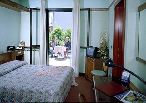 Le camere, spaziose e confortevoli, sono dotate di TV color LCD satellitare con programmi Pay TV, mini bar, scrittoio, telefono, connessione Wi-Fi a Internet, aria condiziona indipendente, ampio balcone o patio, alcune con vista panoramica sulle Alpi.