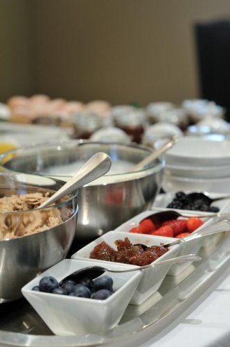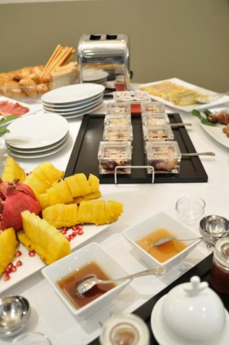 Por las mañanas se sirve un exquisito desayuno con bufé dulce y salado a base de tartas recién hechas, croissants de diferente tipo, mermeladas caseras, macedonias y zumos naturales, además de otras muchas delicias dependiendo de la estación.