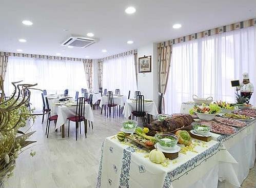 El restaurante, joya del hotel, ofrece deliciosas especialidades de la tradición romañola, con primeros de pasta casera, abundantes bufés de ensaladas y entrantes tanto para comer como para cencar y menús de pescados y carnes, además de dulces.
