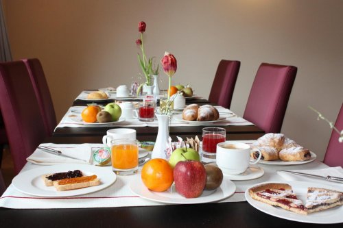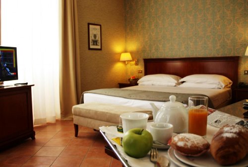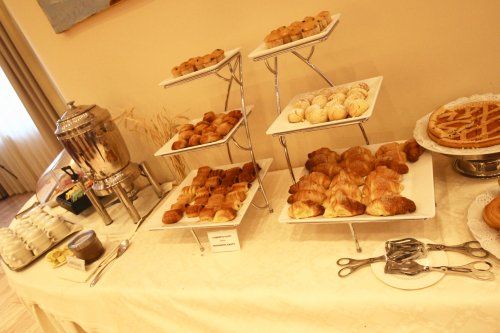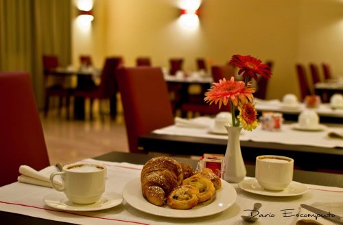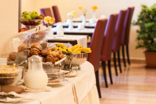 Cada mañana, en la sala de desayuno, se ofrece un delicioso y aromático bufé, además del inconfundible café expreso napolitano.