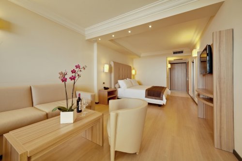 Habitaciones Disponibles: Doble, Matrimonial, Triple, Doble de uso individual, Junior Suite Doble, Junior Suite Matrimonial, Junior Suite Triple, Junior Suite Cuádruple, Junior Suite Matrimonial con vistas al mar, Junior Suite Triple con vistas al mar, Junior Suite Cuádruple con vistas al mar, Junior Suite Doble de uso Individual con vistas al mar, Suite Matrimonial con vistas al mar.