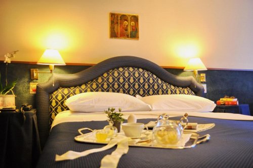 El Hotel San Luca ofrece habitaciones elegantes y luminosas con televisor vía satélite, aire acondicionado, minibar, conexión Wi-Fi a Internet y baño privado con secador de pelo.