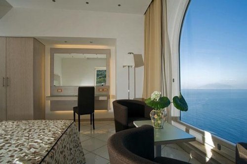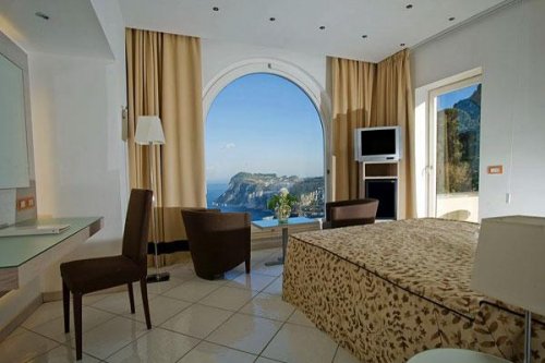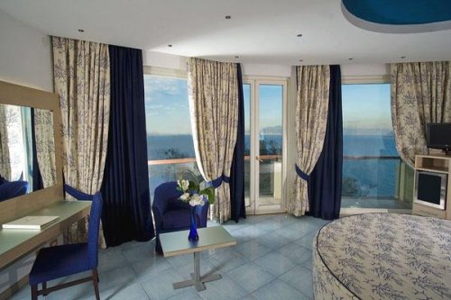 Las habitaciones, de diferentes categorías, están dotadas de balcón o terraza con vistas al encantador Golfo de Nápoles, al monte Solaro o al imponente Castello di Barbarossa.