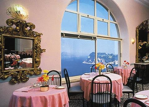 El hotel dispone de habitaciones amplias y elegantes, un exquisito restaurante, un exclusivo bar construido en la roca, una maravillosa piscina semiolímpica (la más grande de Capri) y amplios espacios equipados para celebrar reuniones y congresos.
