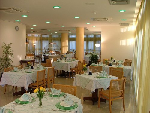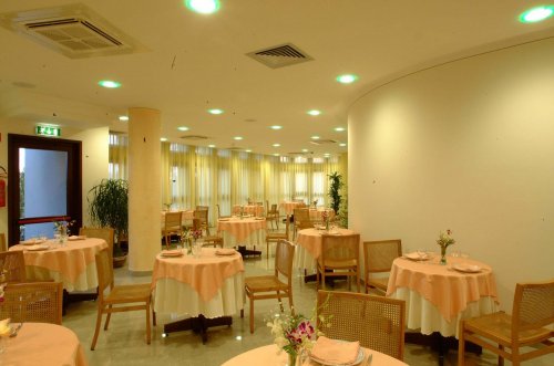 La sala restaurante está situada en la planta baja y está dirigida por un personal cualificado que garantiza la preparación de especialidades gastronómicas variadas y dietéticas.