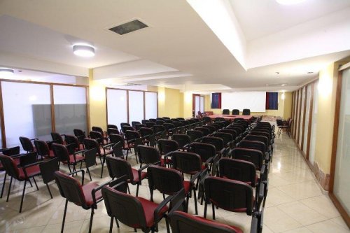 El hotel dispone de una amplia sala de reuniones dotada del equipamiento audiovisual más moderno, así como proyector de vídeo, amplificación, servicio de secretaría y cómodas butacas.