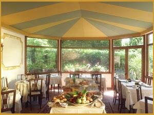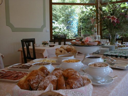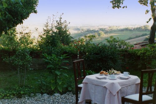 Breakfast is served on the welcoming veranda or in the garden, providing a beautiful view of the Siena countryside.