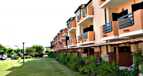 Los apartamentos se distribuyen en villas de dos pisos rodeadas de verdes olivos y disponen de entrada independiente y de una pequeña terraza los del primer piso y patio los de la planta baja. De estilo moderno y cuidados al detalle, disponen de un ventilador de techo, televisor en color, caja fuerte y baño privado.
