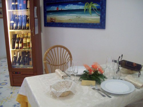El restaurante interno, ideal para banquetes y fiestas, ofrece una excelente cocina regional con platos típicos del Cilento de carne y pescado.