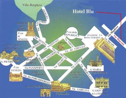El Hotel Soggiorno Blu se encuentra en Roma, en la primera planta de un edificio del 1800, en una estratégica posición con respecto al centro histórico y cerca de la Estación Termini.