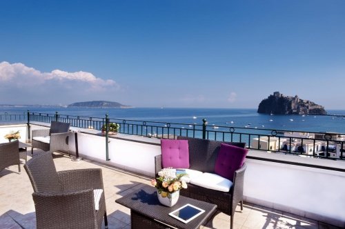 El Hotel Ulisse se encuentra en Ischia, en el encantador escenario de la bahía de Punta Molino.