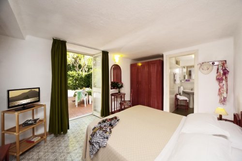 Además, se encuentra a sólo 20 metros de la parada de autobuses y se puede llegar a pie al puerto de Ischia, al casco antiguo de Ischia Ponte y al Castillo Aragonés.
