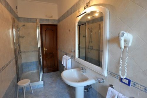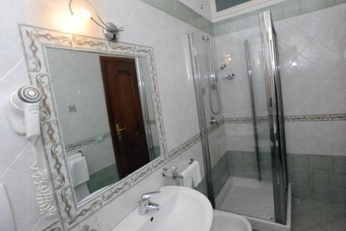 Rossini Room: double room with an additional bed, colour television, air conditioning and heating, and an en suite bathroom with a hairdryer.