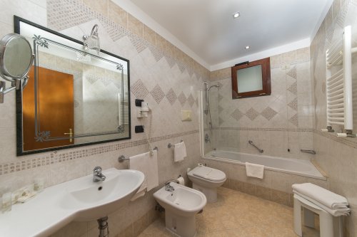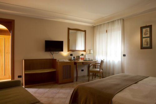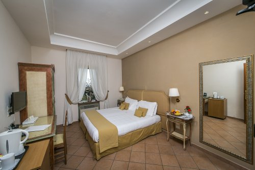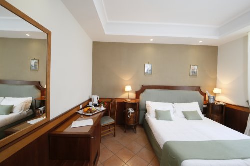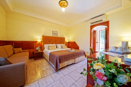 Las 70 habitaciones y Suites están elegantemente decoradas y gozan de hermosas vistas al Golfo de Nápoles o al parque. Además, están dotadas de suelos embaldosados, ventana, balcón o terraza, TV en color por cable y vía satélite, teléfono, minibar, calefacción, aire acondicionado, línea telefónica directa, conexión a Internet (por cable o Wi-Fi), baño privado con bañera o ducha y set de cortesía.