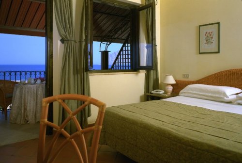 Some of the rooms have a panoramic balcony with a view over the Bay of Cofano.