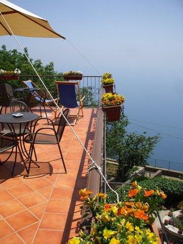 La Suite dispone de una terraza con vistas panorámicas y está decorada con azulejos de Vietri, típicos de las villas de la costa amalfitana.